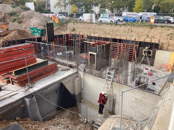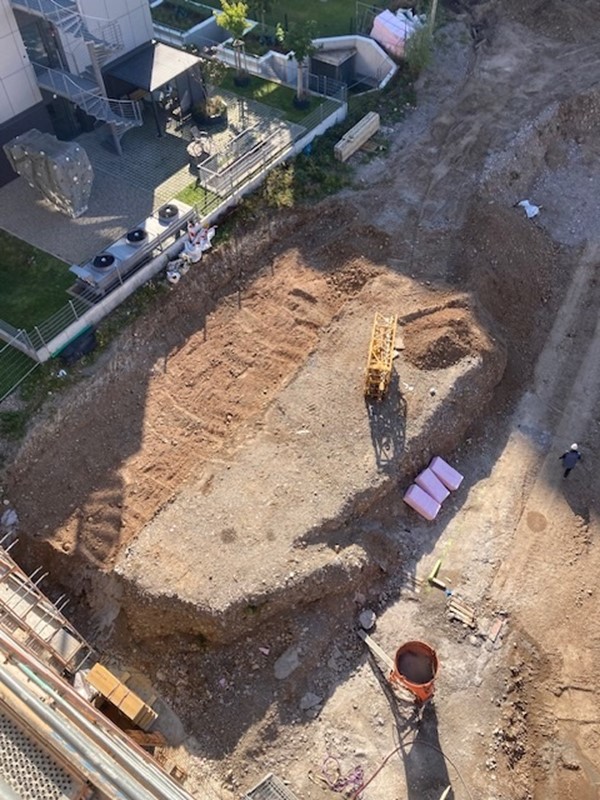 Haus 10 und Tiefgarage erste Erdarbeiten, Blick von Haus 8 (16.10.25)