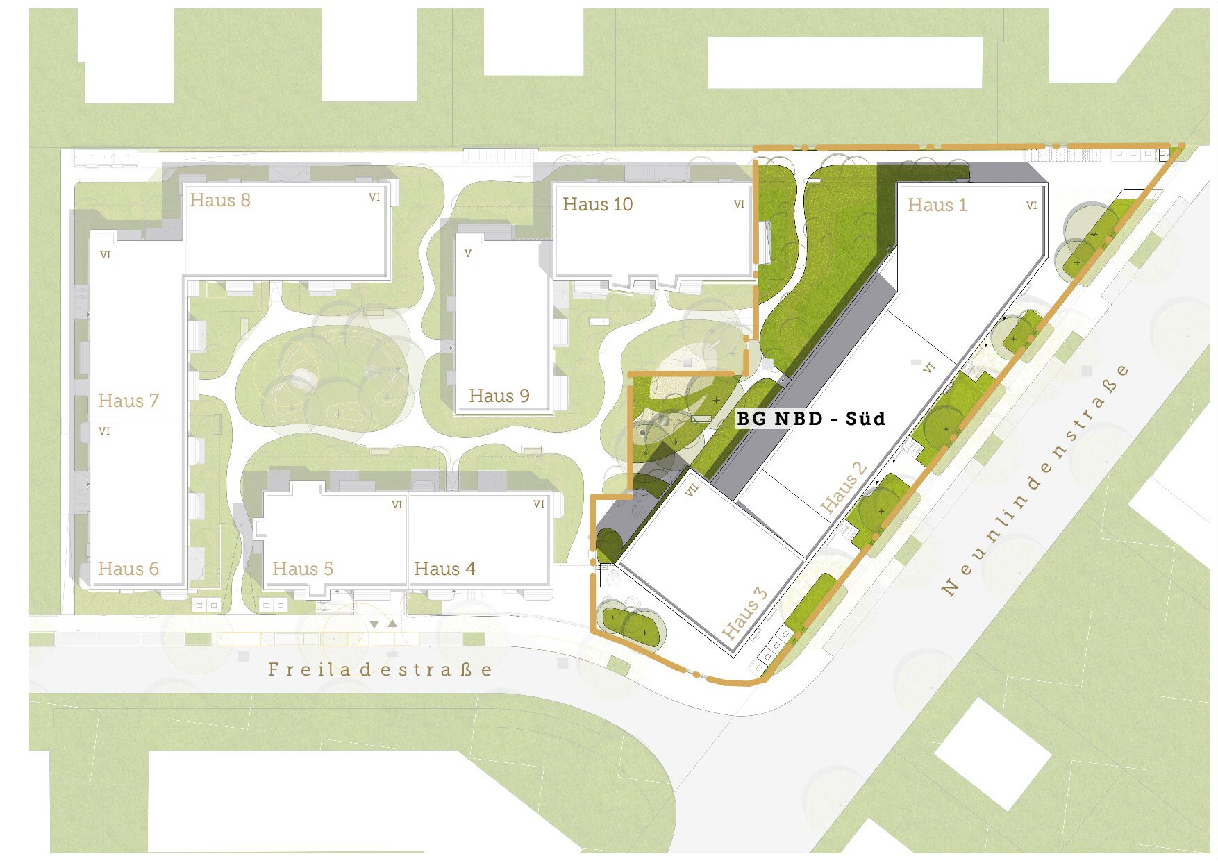 Die Baugemeinschaft Nestbau³ Nord eGbR (Häuser 5 und 6) sowie die Baugemeinschaft Nestbau³ Ost eGbR (Häuser 7 und 8) sind belegt, Bezug ab März 2026.