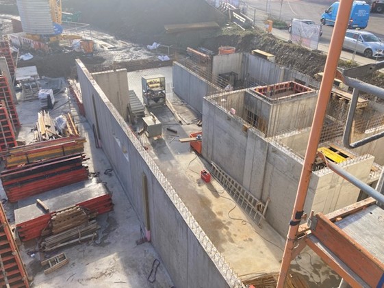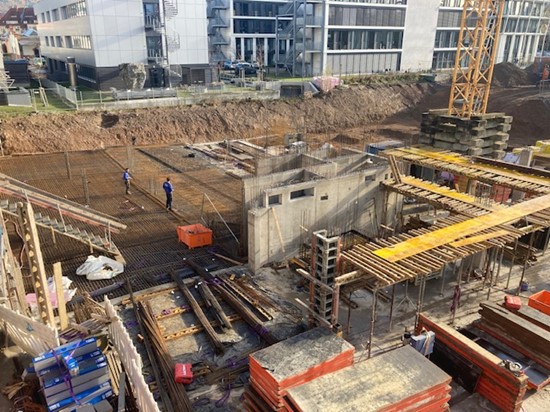 - Wände im UG 1 Haus 4 und 9 sowie in der Tiefgarage werden hergestellt, vor Weihnachten wird noch die obere Kellerdecke/UG 1 von Haus 4 betoniert