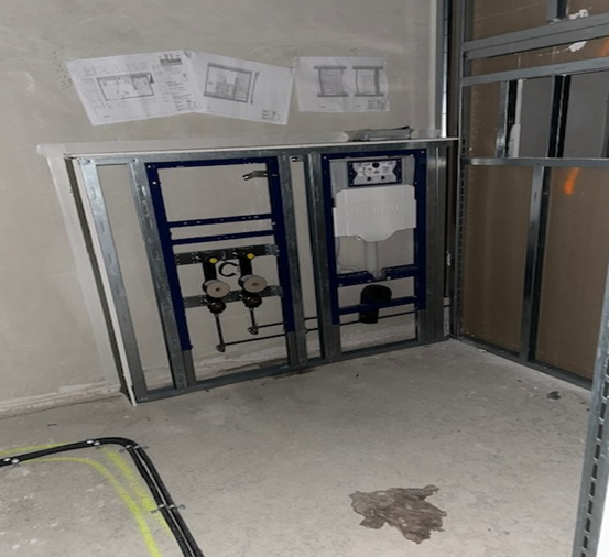 - Der Sanitär hat vom EG – 1.OG die Gestelle für Waschbecken und Toilettenbecken gestellt.